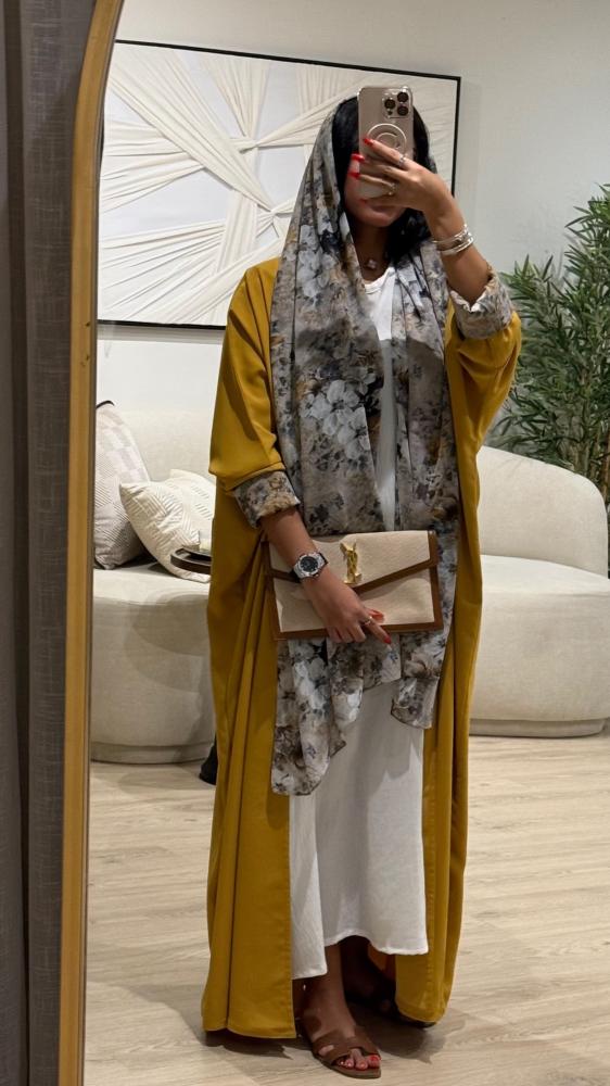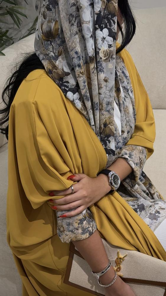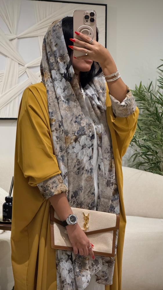 ✨ مصنوعة من خامة نواعم كوري سادة بجودة عالية، وتأتي معها طرحة شيفون جرجيت مشجر تكمل أناقتها وتضيف لمسة مبهجة.